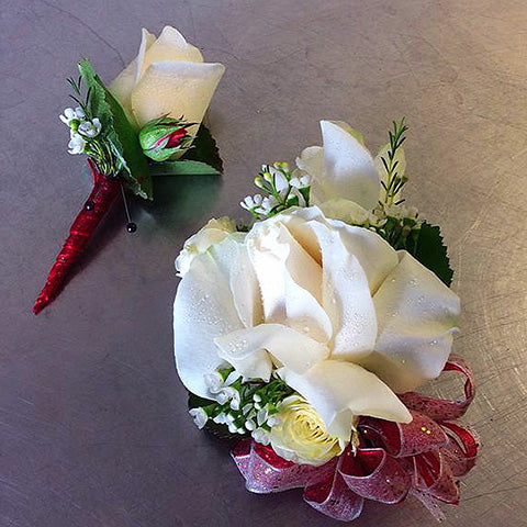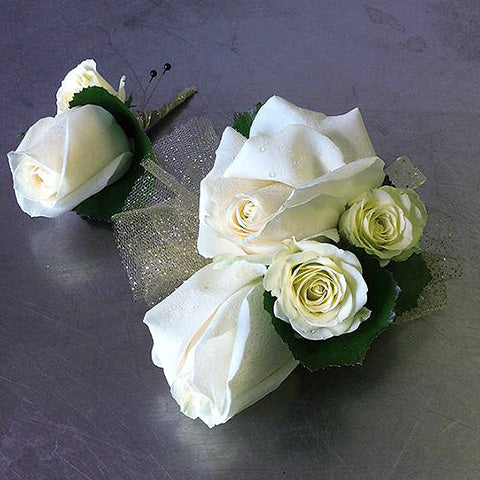 from $16.95Double White Rose & Baby Roses Corsage, Boutonniere, or Set