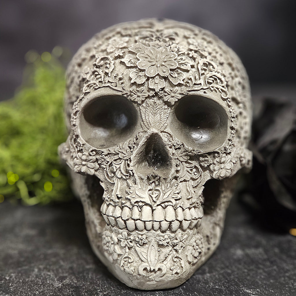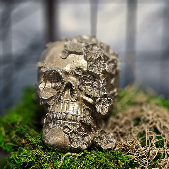 $24.00Silver Dimensional Flowers Skull