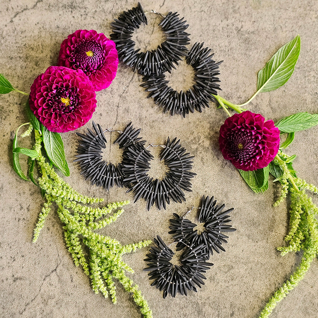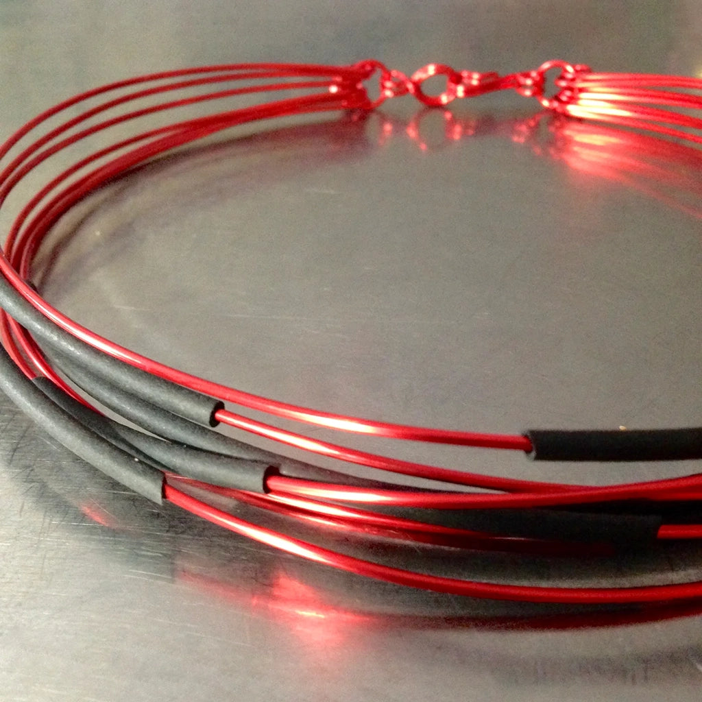 Featured Designer- (wired) jewelry and couture makes a statement. Founder Melissa Kolbusz designs handmade wearable artwork entirely from reclaimed and surplus industrial material. Salvaging components, such as colorful alternator wire, tubing, and transistors, (wired) fashions one-of-a-kind and limited edition works with designs on the future. The color, texture, and malleability of the found materials guide the design of each piece and foster different compositional challenges over more traditional materials.