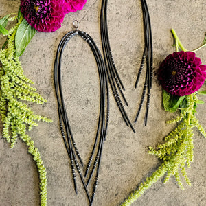Wear these instead of a necklace. They are really lightweight and have a lot of movement. Made from upcycled o-ring cord and stainless steel links.
